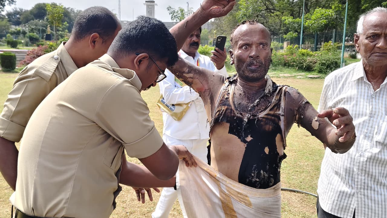 ಮಂಡ್ಯ ಡಿ.ಸಿ. ಕಚೇರಿಯ ಮುಂದೆ ರೈತ ಪೆಟ್ರೋಲ್ ಸುರಿದು ಆತ್ಮಹತ್ಯೆಗೆ ಯತ್ನ
